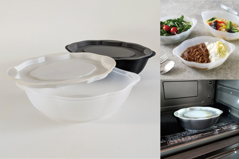 洋食器風の形状なのでそのまま食器使いOK。サラダ、パスタ、カレーなどの小分け保冷に丁度良いサイズ。