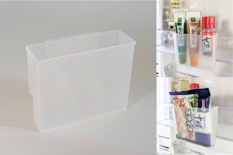 直径3.2cmまでの瓶タイプの調味料、スライスチーズも収納可能なマルチな収納ケース。